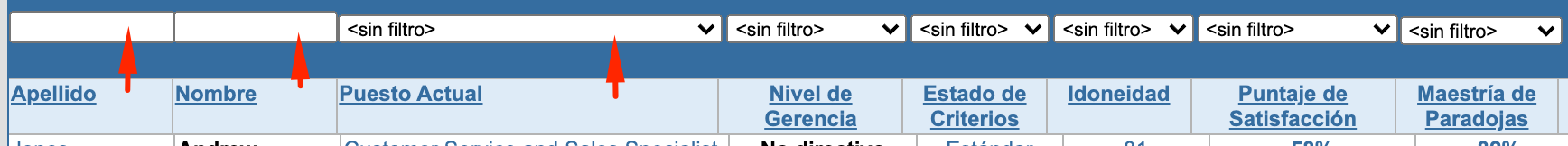 También encontrará casillas para filtrar y/o buscar dentro de su lista de empleados